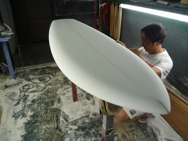 ショップのオープンは2001年。それ以来、ロングボードをベースに、フィッシュ、ボンザー、シングルフィン、ニーボード、パイポとさまざまな種類のサーフボードを作り、試してきました。