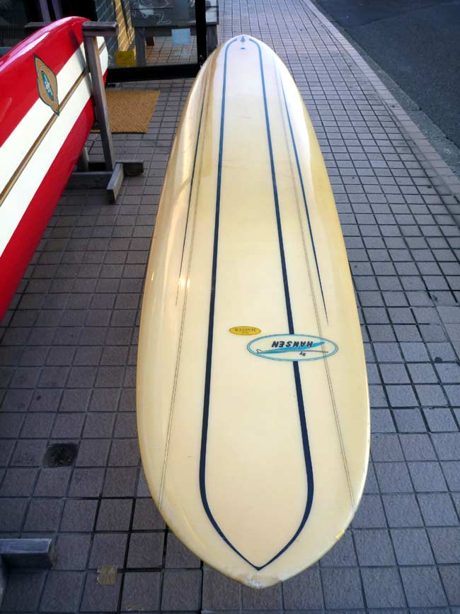 オーストラリアのVEEボトムやジョージ・グリノウのスプーンの影響を多いに受けていると想像できますが、ここから一気にボードが短くなり始め、サーフボードにさまざまなテクノロジーが盛り込まれて行く直前の時代に作られたロングボードのシェイプだけにとても洗練されたイメージが伝わってきます。