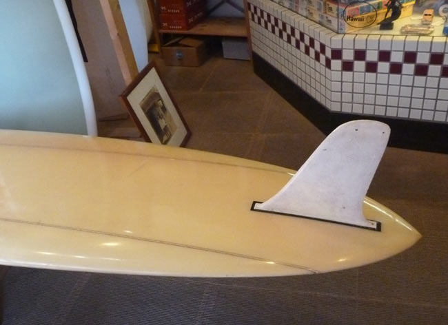 フィンはマイクドイルモデルと同じテンプレットで取り外しができるようになっています。なんとなくフィンだけ時代をさかのぼっているような気もしますが、現在でも同じようなシェイプとフィンの形で作られ、乗られているのでこのフィンの形がいいんでしょうね。