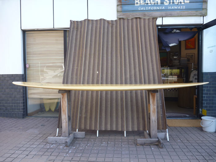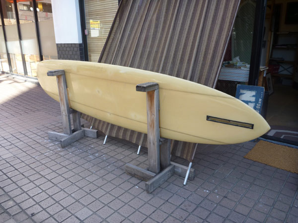 45年前のサーフボード、店に寝かせておくのももったいないので乗ってみることにします。