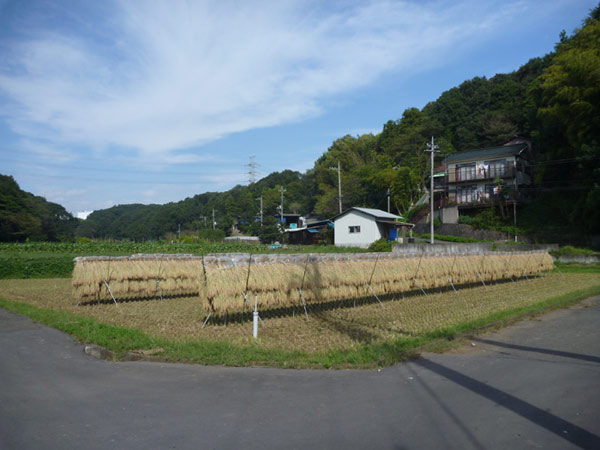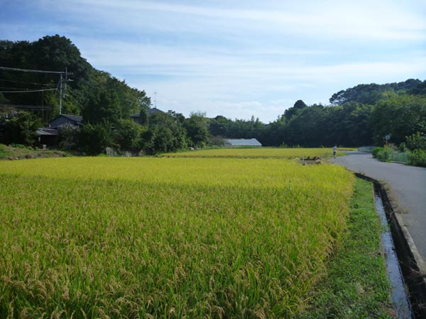 トレイルを走って里に下りてくると、たわわに実った稲穂が稲刈りを待つばかり。