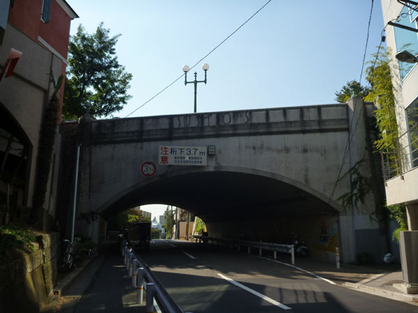 こんな橋を発見。街灯が洒落てます。良くみれば橋の向こうは下り坂。下ってしまうとその先は中目黒のはずです。ということはこの橋の上は山手通りのはず…(地形を頼りにしてるでしょ?)