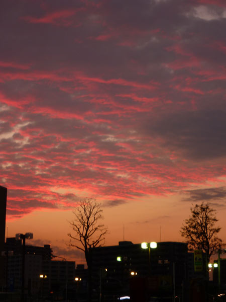 といいつつ、夕焼けの茜雲。昨日の夕方です。店から見える夕焼けがあまりにきれいだったのでパシャリ。自然の色が無い都会がきれいに映える時間です。