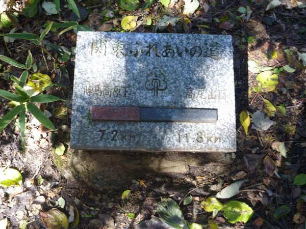 途中にはこんな標識があって距離の目安になります。高尾山口の駅まで、あと11.8キロです。