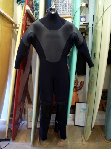 さて、Oさんオーダーのネックインフルスーツが出来上がりました。裏起毛の素材よりも軽さを重視したいというオーダーで、下半身を5ミリ厚のSUL素材に変更しました。ご希望どおり軽く仕上がっています。この5ミリフルは動きやすそうです。