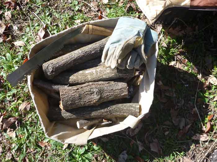 まずは、たくさんの実りをくれた畑のナスビと甘長とうがらしにお礼をいいながら引っこ抜き、アスパラガスを根元から切って処分してから、裏山へ行って夏の台風で折れて落ちてずっと転がっていた太めの木の枝をもらってきました。