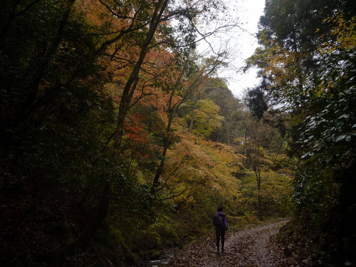 高尾山の北側にある尾根との間にある木下沢林道(こげさわ)です。紅葉には少し遅かったかな?だいぶ地面に落ちてしまっていましたが、カエデなどはまだまだ真っ赤で、雨に濡れてきれいでした。