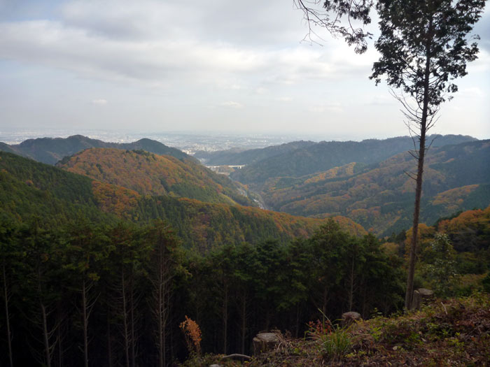 山全体が色づいていますが針葉樹が植わっているところは緑で残っています。それにしても杉の木ずいぶんたくさん植えたもんだと他の場所を見ても、そう思わずにいられませんでした。杉だけの不自然な林は人間が作り出したものです。こうやってみるとやっぱり不自然。