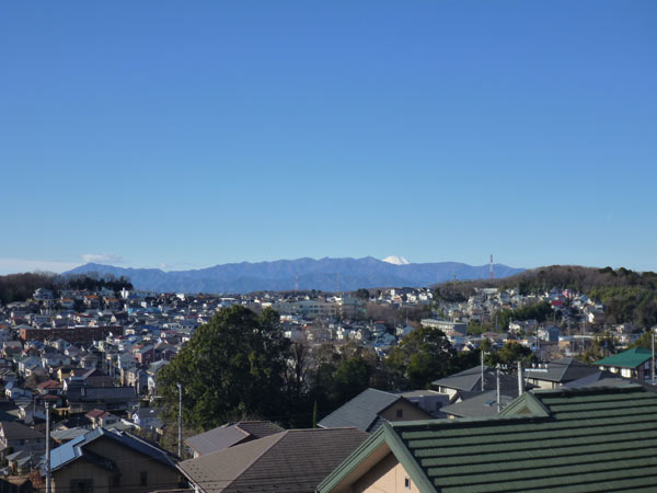 尾根を伝って走ります。寒いけどいい天気で丹沢と富士山がくっきり見えてます。