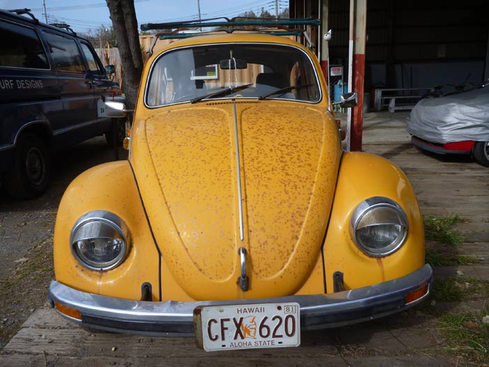 ビートル&アロハキャリア。カツさんのシェイプルームがあるファクトリー&アトリエコンプレックスにはこんなクルマがたくさんです。これも70年代ですね。