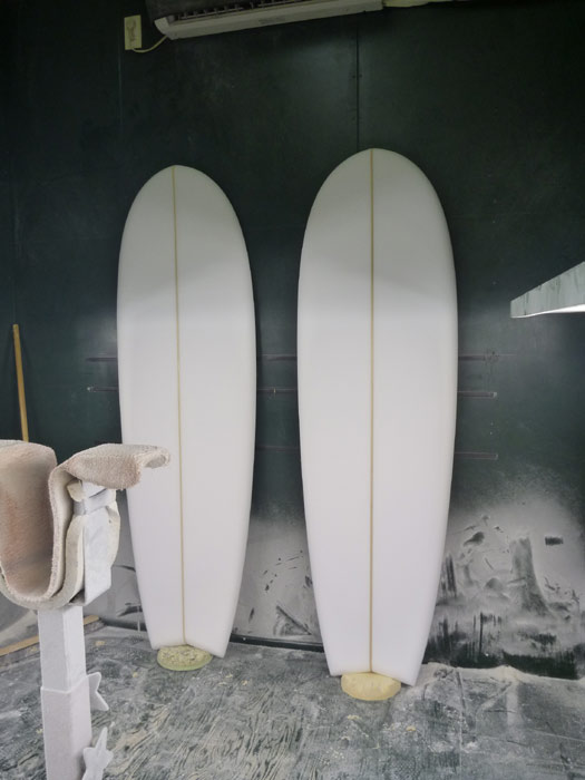 ショップのオープンは2001年。それ以来、ロングボードをベースに、フィッシュ、ボンザー、シングルフィン、ニーボード、パイポとさまざまな種類のサーフボードを作り、試してきました。