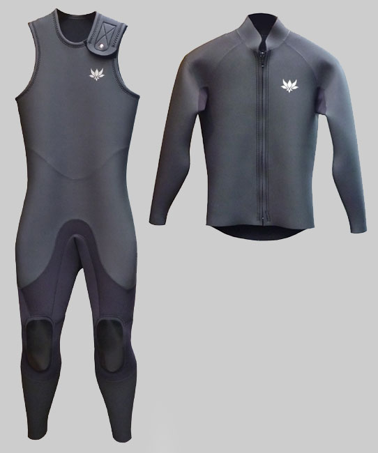 AXXE CLASSICのオーダーフェアはこのSUL素材を「全身に」使った、ネックインフルスーツとノンジップタイプの二つに加えて、ちょいとクラシカルなロングジョンとジャケットのセットアップをご紹介したいと思っています。