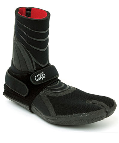 画像は、SURF GRIPのブーティ3mm 動きを妨げない構造とストラップ。甲のひっかかりもなくて、かぎりなくベアフット。縫い目のシーリングはカンペキなので中に水を入れて圧力をかけても水は漏れてこない。つまり水が入ってこない。裏返して干せる→クルマの中がクサクならない。衛生的でもあるのです。