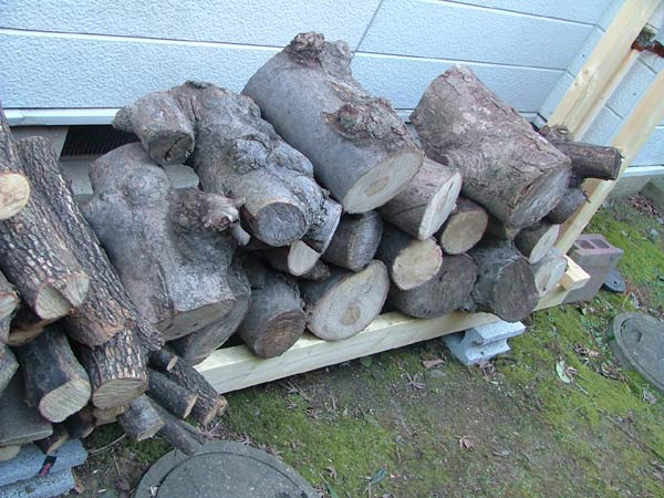なんで最近急に丸太が登場し始めたのかと申しますと、今年の冬に薪ストーブを導入するつもりなんです。何気なく行ってみた薪ストーブのお店でみた炎の美しさと自然な暖かさ、そしてそのフシギな魅力にすっかり取り付かれてしまって、導入を決意しました。燃料の薪は少なくとも一年間は乾燥させなければいけないので、いまからこうして準備しているわけです。今年の冬にはこれらの薪が燃える画像をご紹介できると思います。