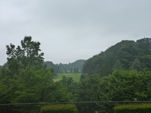振り返ってゴルフコースを背にして立てば、本当なら新宿の高層ビル群とその向こうのスカイツリーのスカイラインが広がっているのですが、今日はあいにく梅雨空で何も見えません。