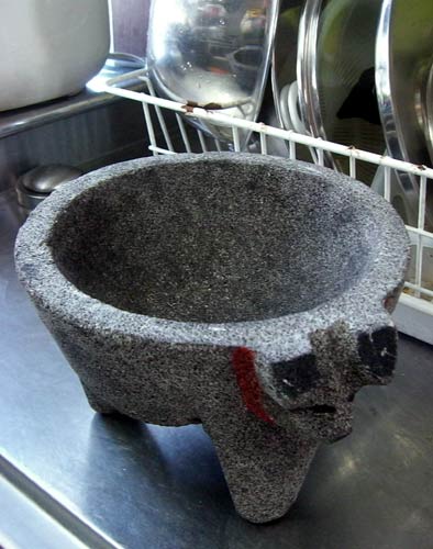 岩石製のワッカモーレボウル。晩飯を食べにいったメキシコ料理屋で使っていたものを譲ってもらったようです。新しいものは馴染むまでボウルの中に砂が出るので使い込まれたもののほうが良いと言われてお店で使用中のものを買ってきたみたいです。