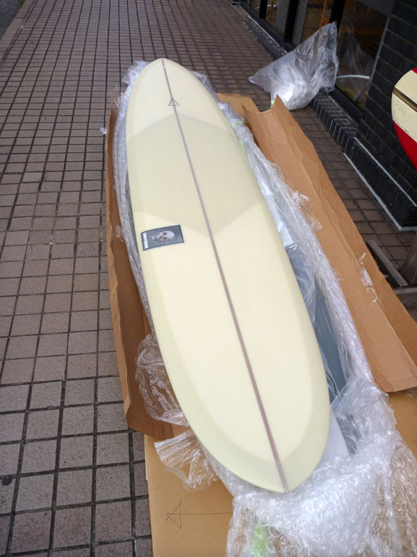 フィンはグリノウA4タイプの9.75を付けます。イメージは私が乗っている1968年製のハンセンマスターの時代のロングボードです。ロングボードの時代の最終進化系のイメージ。