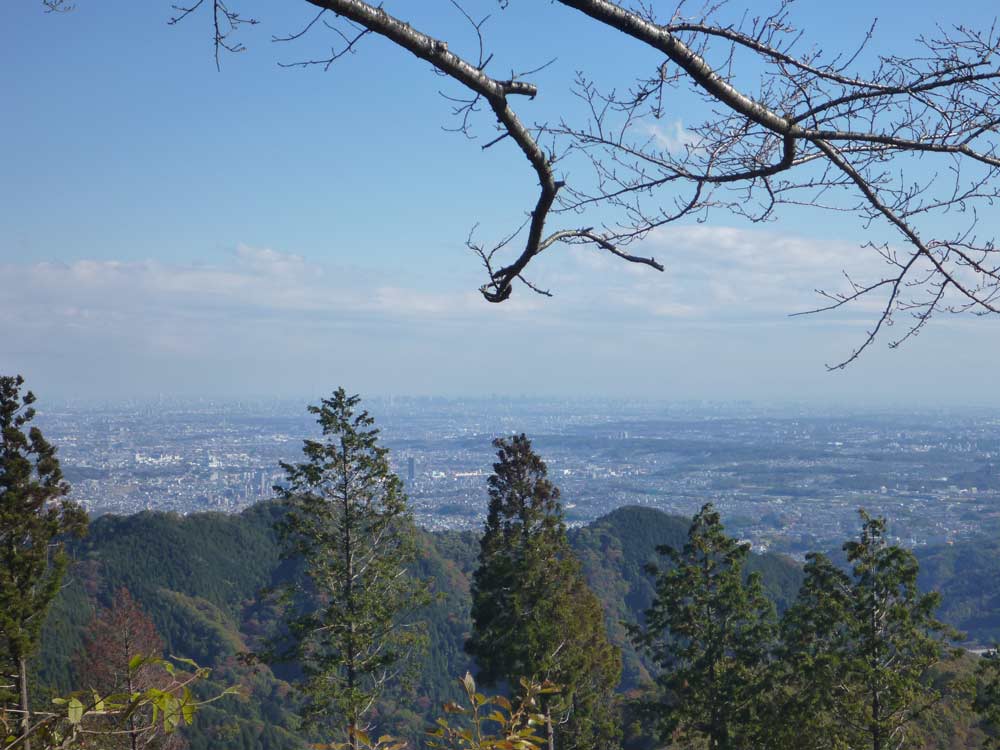 あまりに気持ちよくって、ヘラヘラしながら走って景信山に到着です。空気が澄んでいるのか、東京湾とその向こうの房総半島まで見えました。江ノ島も見えていました。東京の高層ビル群がまるでモノリスのように見えています。スカイツリーも写っています。