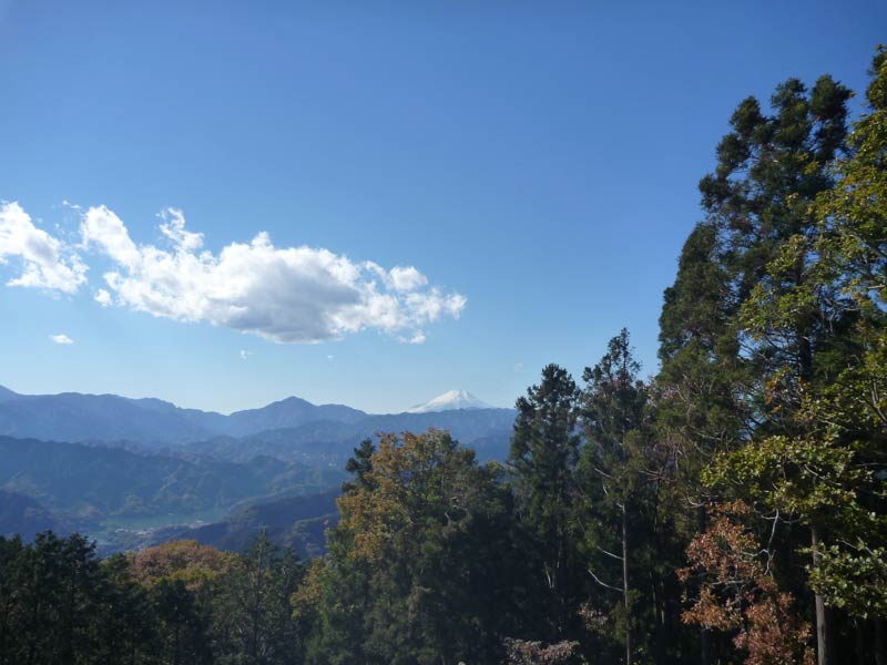 東京に背を向けると富士山が日の光に煌めくように見えています。