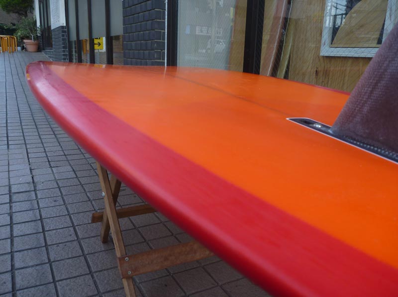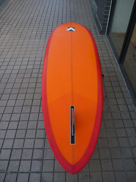 フィンはプリモフィンの8インチ。シングルフィンですがトライプレーンボトムのテールエッジはサイドフィン付きのボードみたいに反応がいいです。クラシックなロングボードのスタイルでも乗ることができます。