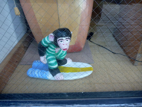 波乗りお猿は、上の写真の位置に移動。ここを通る子供はたいていこいつに食いつきます。