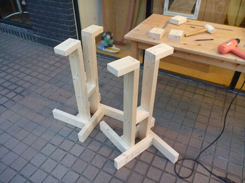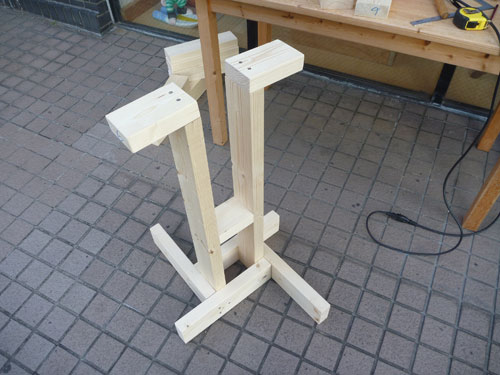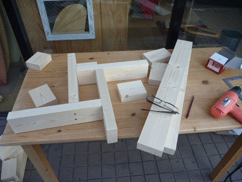 井桁状に組み合わせてベースにします。形は単純ですが、ただ組み合わせてネジで留めるだけなので、意外に難しいです。