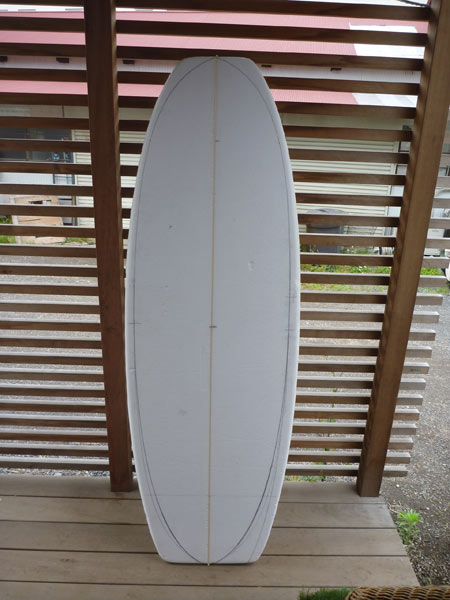 10分くらいで出来てしまったのがコレ。私のブツブツは、私がいつも入るポイントで特別な日ではなく、ロングボードと一緒でいつでも使えるエブリデイボード(チャネルボトムは、考えた末にまたの機会にすることにしました)