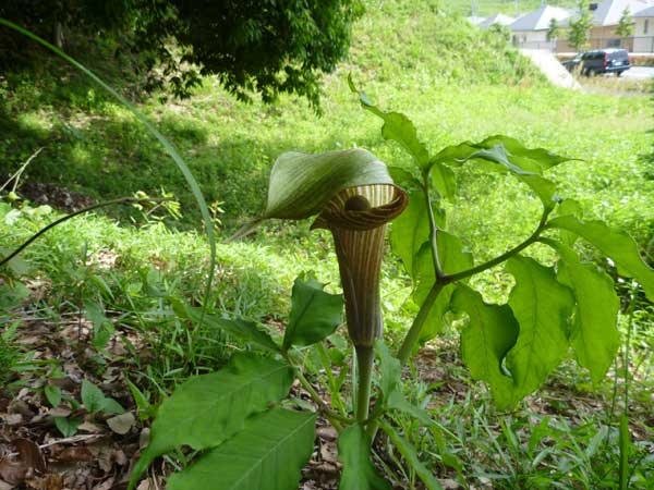 いろんな植物が出てきています。これはテンナンショウ。別名マムシグサです。