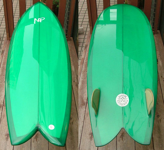 NPと言えばフィッシュが1本だけ残ってます。これも乗ってみようかと思っているのですが、どうも自分にはちょっとボリューム不足のようです…GLASS LOVEのフィッシュと同じに作ってもらったフィッシュです。どなたか乗ってあげてください。ホームページのOTHER BOARDのページに乗ってます。