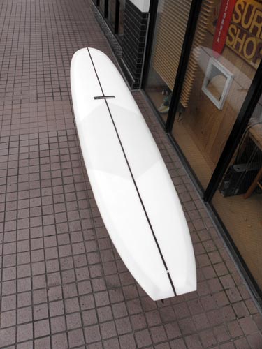 実はこういうボトムとレールのロングボード、以前にカツさんに削っていただいたことがあります。接水面がフラット基調なせいか、グライド感がとてもあります。丸いボトムで50/50レールのクラシックボードに比べると反応が良く、体重を乗せると柔らかくスムースに反応してくれます。