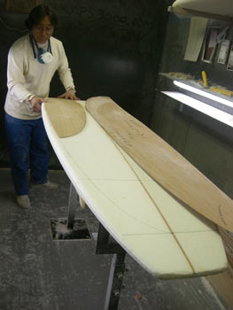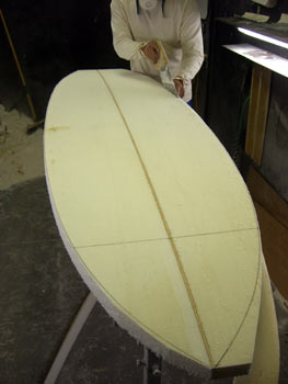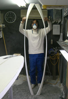茅ヶ崎のMさん、オーダーボードのシェイプに取り掛かりました。