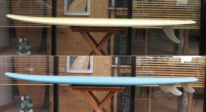 ショップのオープンは2001年。それ以来、ロングボードをベースに、フィッシュ、ボンザー、シングルフィン、ニーボード、パイポとさまざまな種類のサーフボードを作り、試してきました。