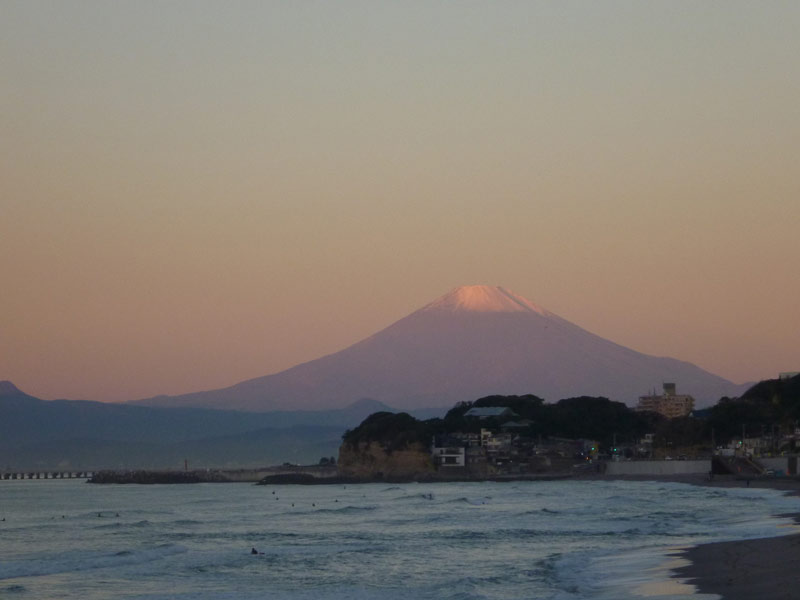 朝日に照らされた富士山がピンク色に染まっていました。北斎の凱風快晴みたいですが、風は南(凱風)ではなくオフショア。北風です。