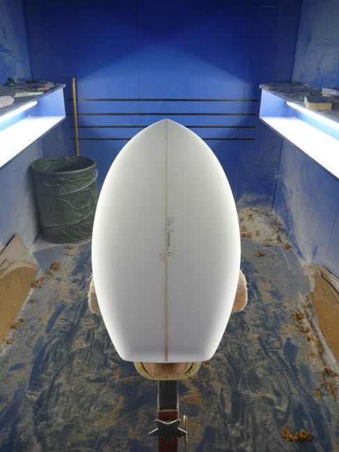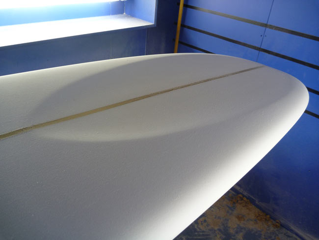 ストックボードとしてノーズライダーを作っていただいています。長さは9’4”。気持ち短め。9’6”だとちょっと大きすぎるかなあと感じる人、9’6”でもいいけどもう少し軽く動かせるノーズライダーも欲しいと思っている人、どちらでもOKです。
