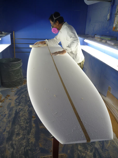 ショップのオープンは2001年。それ以来、ロングボードをベースに、フィッシュ、ボンザー、シングルフィン、ニーボード、パイポとさまざまな種類のサーフボードを作り、試してきました。