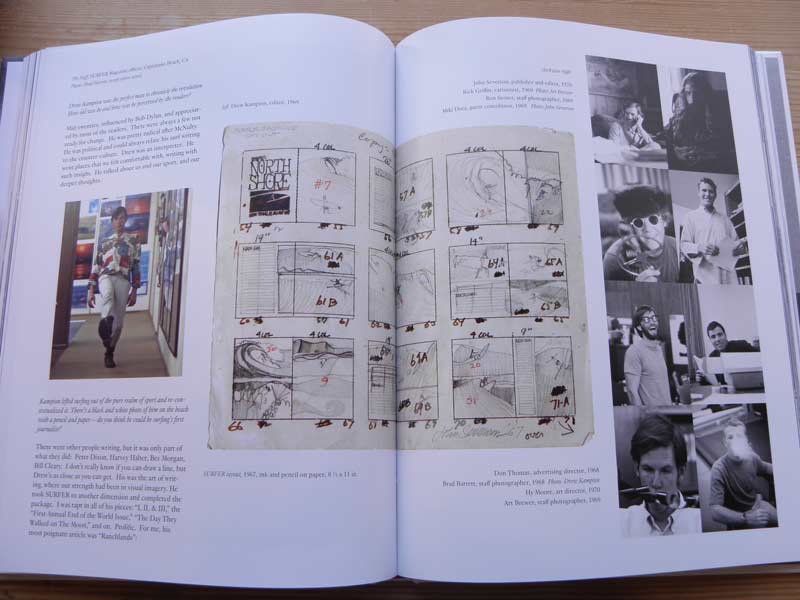 サーファーマガジンのレイアウト。貴重な写真です。編集室には、ジョンセバーソン、ドリューカンピオン、リックグリフィン、ロンストナー、ミキ・ドラ(インタビューでもしたんでしょう)、アート・ブリューワーらの顔が…