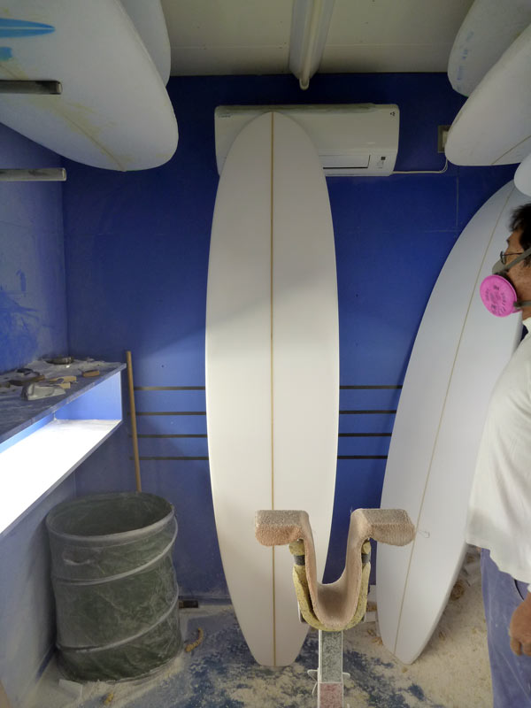 ショップのオープンは2001年。それ以来、ロングボードをベースに、フィッシュ、ボンザー、シングルフィン、ニーボード、パイポとさまざまな種類のサーフボードを作り、試してきました。