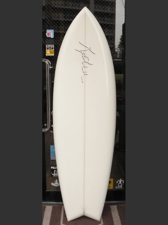 「ヌシ」と呼んでいるフィッシュです。サイズは、6.6~6.8 x 21 1/2 x 2 5/8~3/4 くらい。フィンのセッティングなんかは、いままで乗ってきたビッグフィッシュよりは少しモダンなイメージになります。大きくするにはこの「ヌシ」がいいんじゃないかと思っています。