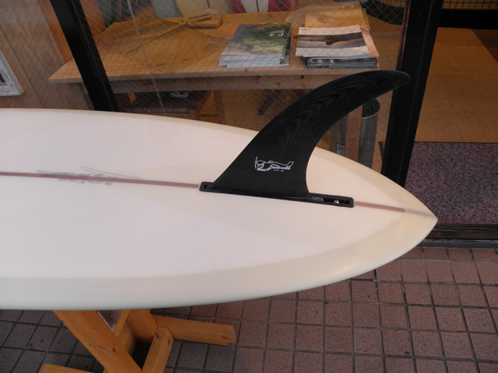 アウトラインは絞り気味のノーズにテール側にボリュームがあるPIG。テールはラウンドピンですが、このラインはグライダーっぽいなあ、といま気が付きました。この曲線がスムースな回転性を生み出しています。
