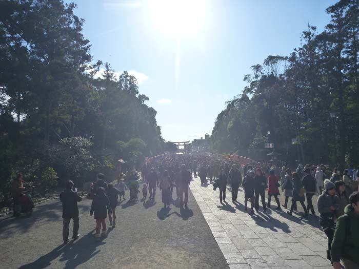 鶴岡八幡宮へと来てみたものの、混雑で小町通りから参道を抜け神社の入り口にたどり着くまでにひと苦労。その上、本殿へお参りするのにもすごい列。逆光でかすんでいるのではなく、砂埃…