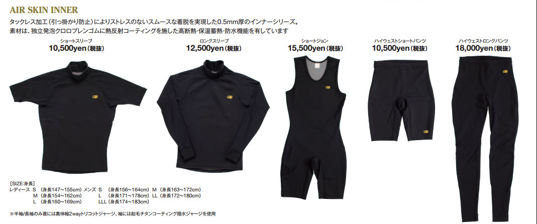 SURF GRIP のエアスキンインナーのラインアップはこんな感じです。