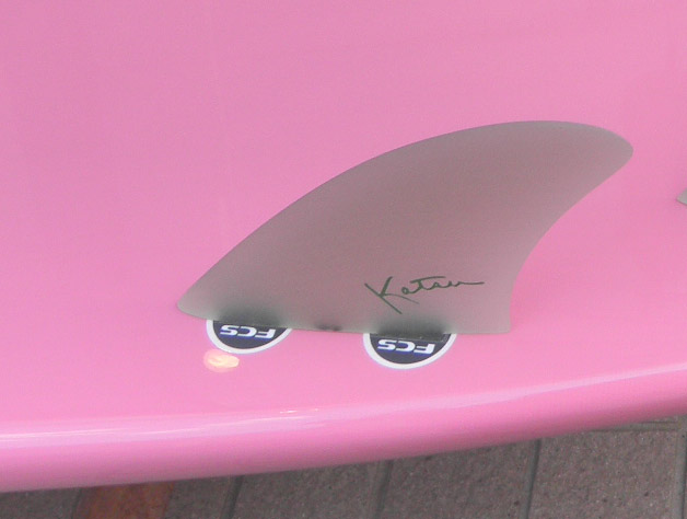 サーフボードに不可欠なフィン。シングル、トライ、クアッド、ツインなど、さまざまですが私は可能な限りグラスオンにしちゃいます。上の画像は件のOKIDOKI 7.7です。