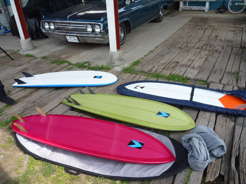 ショップのオープンは2001年。それ以来、ロングボードをベースに、フィッシュ、ボンザー、シングルフィン、ニーボード、パイポとさまざまな種類のサーフボードを作り、試してきました。