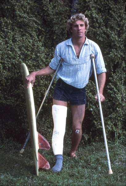 潮が引きすぎでボトムのリーフにフィンがひっかかり、ヒザ立ちの姿勢のままリーフに激突。脚、大変なことになっていますが、フィンも壊れているのが分かります。