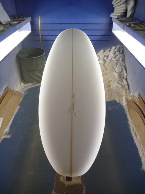 奈良県のIさんのご注文のOKIDOKI、シェイプ完成しました。ちょっと長めのミッドレングス 8’4”です。大柄な方なので幅は広めに厚みも多め、ボリュームたっぷりにシェイプいたしました。