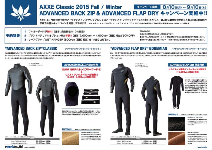 AXXE CLASSIC 早期受注キャンペーン 9月10日まで開催しております。冬のウェットのお話をしましょう。きっとひんやりしますよ。