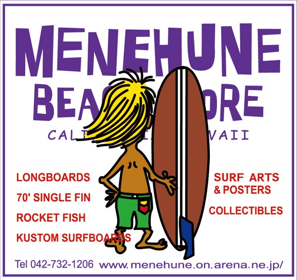 こんなのもありました。メネフネトレードマークのSURF BOYは私のオリジナル。これは某アジアの国のサーフショップにまんまパクられるという楽しいハプニングがありました。