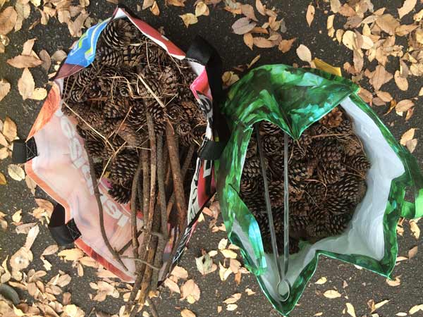 今朝はストーブの着火剤に使う松ぼっくりを拾って冬支度です。