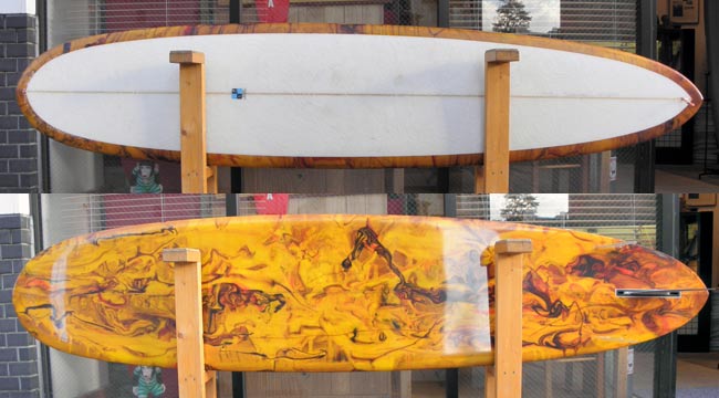 画像は最近注目度が急に高くなってきた、TIKIというモデルです。上のボードは、9フィートジャストですが、ロングだけではなく6.8の長さから作っています。ニューモデルというわけではありません。ずーっと以前からあったモデルです。