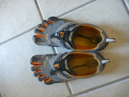 波乗りに効くランニングには、ベアフット系が良いと思っているので、シューズはこんなフィンガーシューズです。